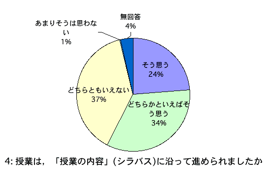 - 授業は,「授業の内容」(シラバス)に沿って進められましたか