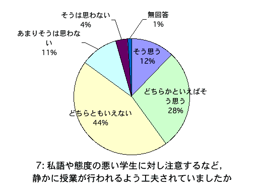 - 私語や態度の悪い学生に対し注意するなど,静かに授業が行われるよう工夫されていましたか