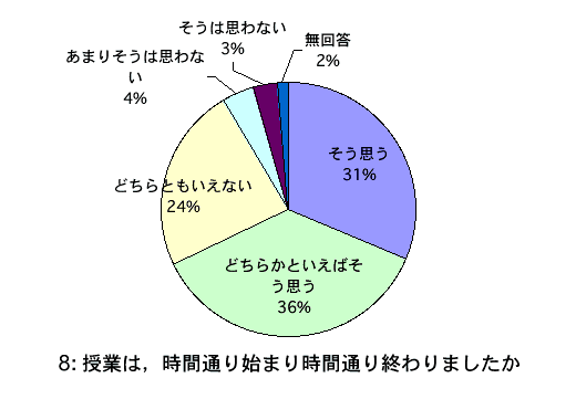 - 授業は,時間通り始まり時間通り終わりましたか