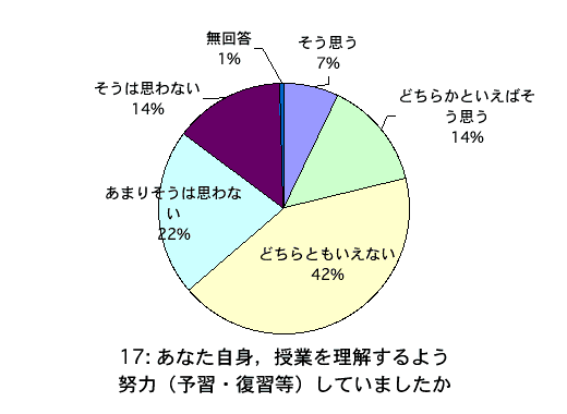- あなた自身,授業を理解するよう努力(予習・復習等)していましたか
