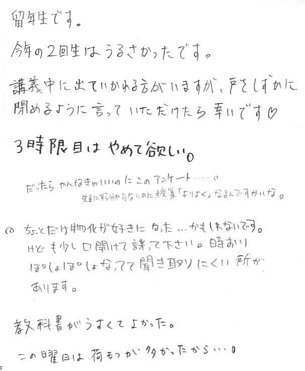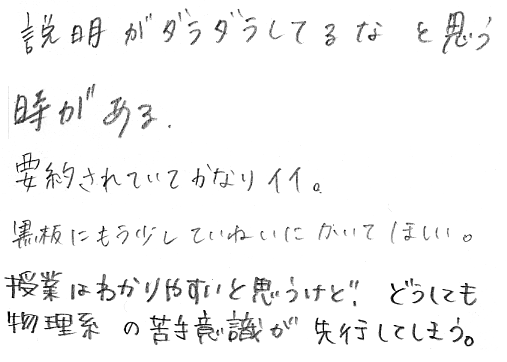 - 板書の字がきたない:そうです.字が下手だからです.努力はしますが,もう,どうしようもありません.