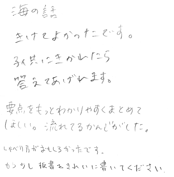 手書き意見57件,絵1件(ランダムに2〜4件づつ表示)