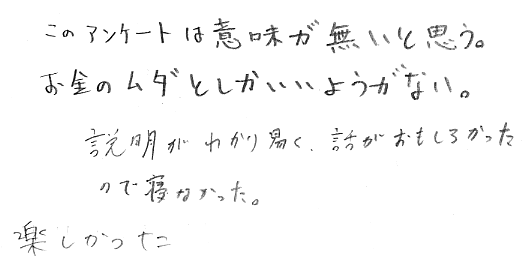 アンケートに対しての返事