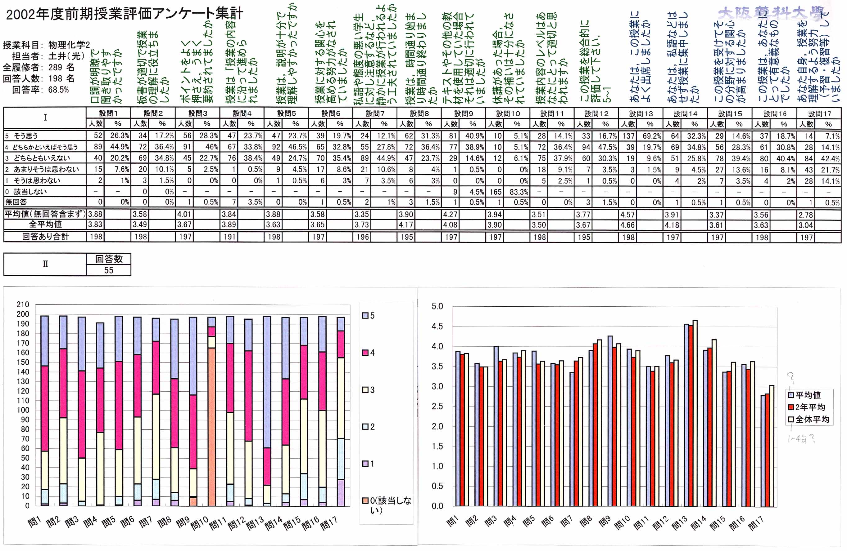 2002年前期授業評価アンケート集計