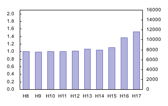 | Ratio | 1.00 | 0.98 | 1.00 | 1.00 | 1.01 | 1.05 | 1.04 | 1.10 | 1.36 | 1.51 | ||