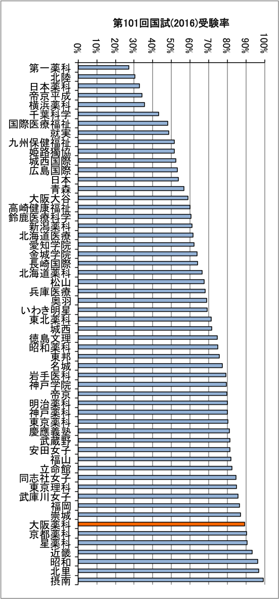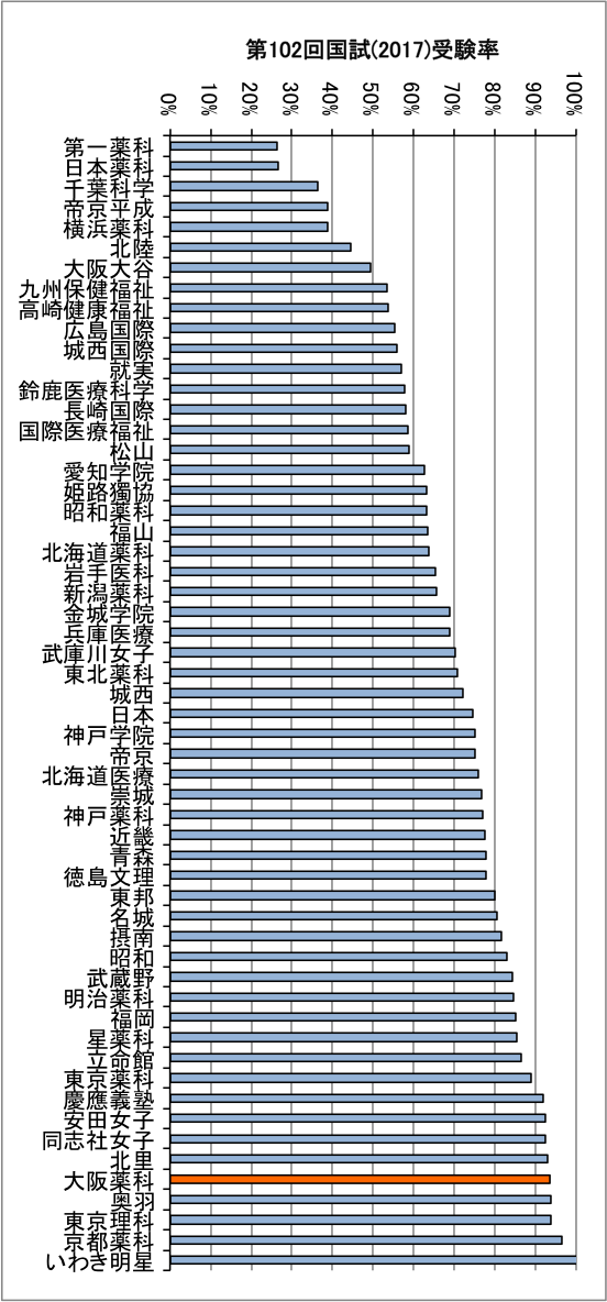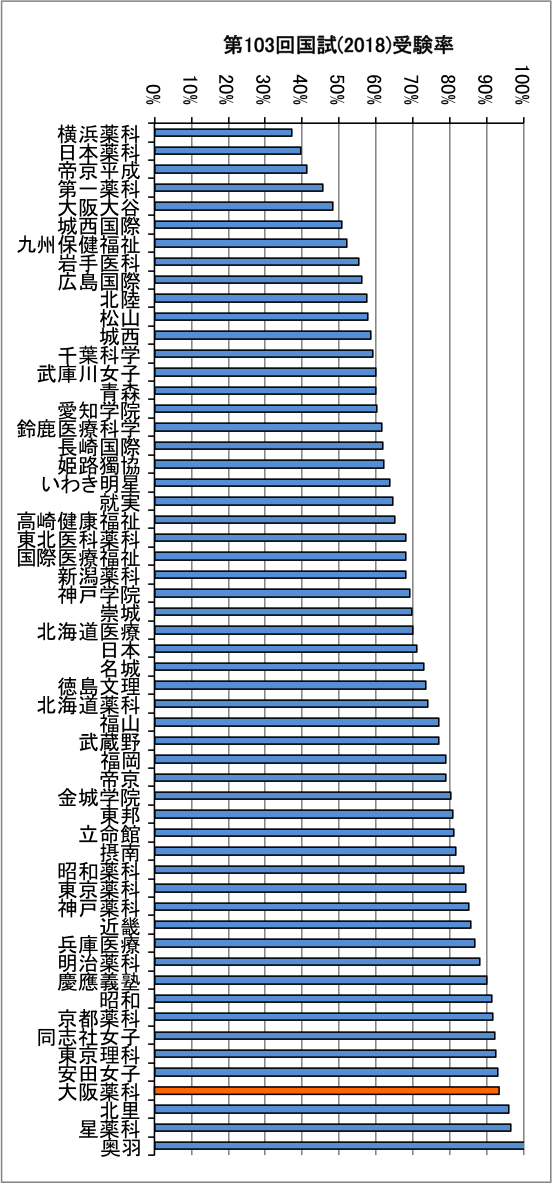計算:(2018年の薬剤師国家試験受験者数/2012年の入学者数)×100