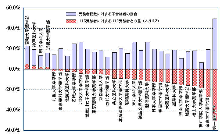 | 日本大学薬学部 | 223 | 196 | -27 | -12.1% | 169 | 86.2% | 270 | 53 | 19.6% | 217 | 77.9% |