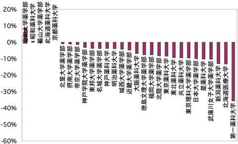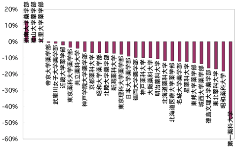 | 徳島文理大学薬学部 | 234 | 196 | -38 | -16.2% | 87.2% | 254 | 47 | 18.5% |