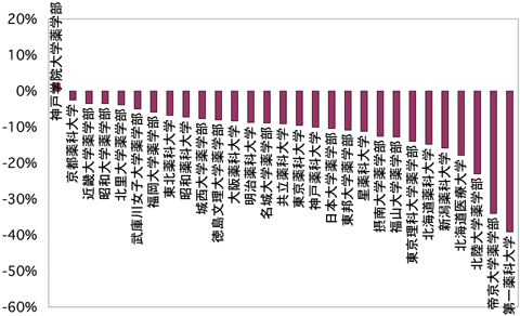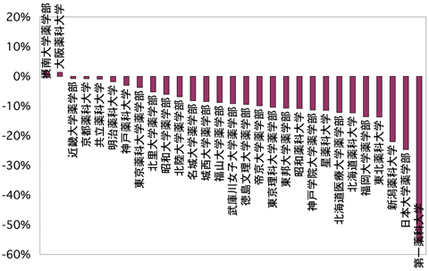 | 北陸大学薬学部 | 300 | 231 | -69 | -23.0% | 81.4% | 325 | 85 | 26.2% |