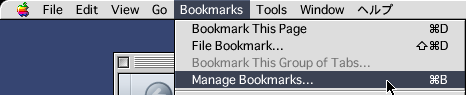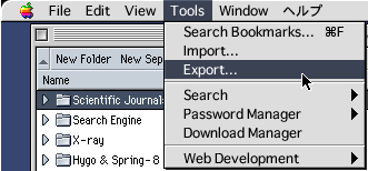 これで,ブックマークをBookmark.htmlというファイルとして保存できます.ただし,このファイルは化けています.
