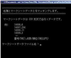 meibomatch.exe をダブルクリックすると、MS-DOSのコマンドプロンプトが現れます。