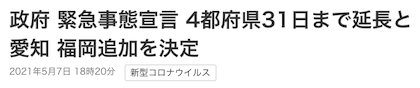 ◊ 05-07 緊急事態宣言延長 5/31まで