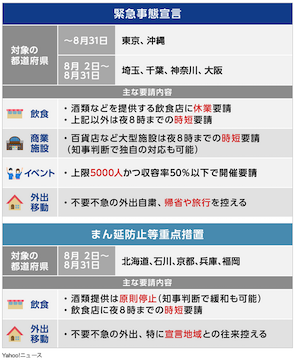 ◊ 07-30 緊急事態宣言 8/31まで