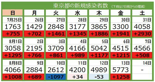 ◊ 08-05 東京 過去最多5042人