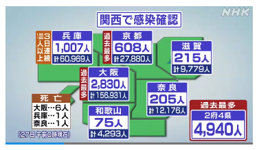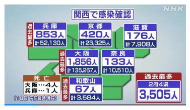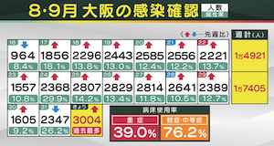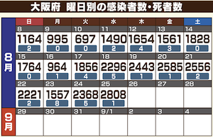 ◊ 08-06 大阪 過去最多1310人, 11日1490人