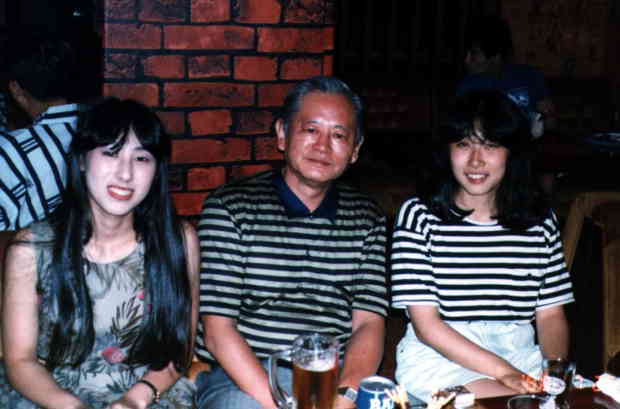 昭和63年特研旅行・城崎にて…両手に花.この日,唄いまくられました.