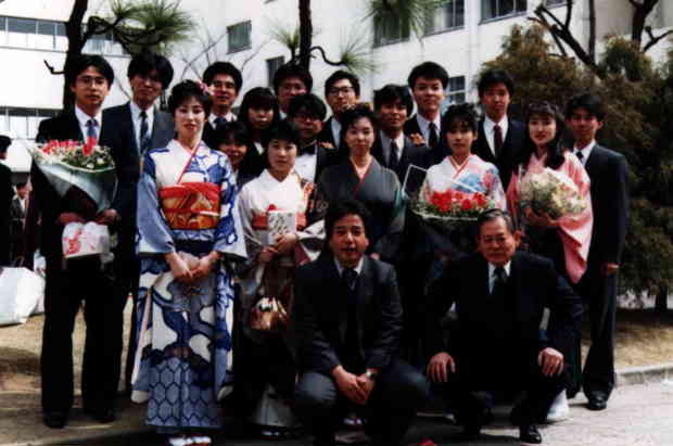 出会いは2回生の物理化学Iの講義のとき。数学や物理が好きだった私にとって,この講義はほとんど抵抗がなかった。たとえどしやぶりの雨が降っていても,生徒の数が少なくても,いつも同じように大阪弁で淡々と講義される先生の声は,どこか力強さもあって,ノートを執りながら聞いているとなぜか落ち着ける90分だった。きっと,ずっと幼い頃から私の中でイメージしていた大学教授像に,どことなく風格のある井上先生がぴったりだったのかもしれない。周りの人はさておき,かなり出席率の高かった私だったけれど,後に,三年間余りも先生のご指導の下で研究することになろうとは・一その頃は夢にも思っていなかった。