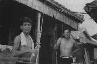 昭和39年(1964)頃?の井上先生と木村先生(若い!)海水パンツにベルトが付いていることに注意して下さい
