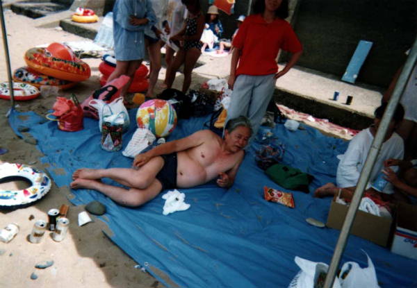 図平成5年(1993)7月片山津温泉近くの海岸最後の特研旅行にて…太っ腹…